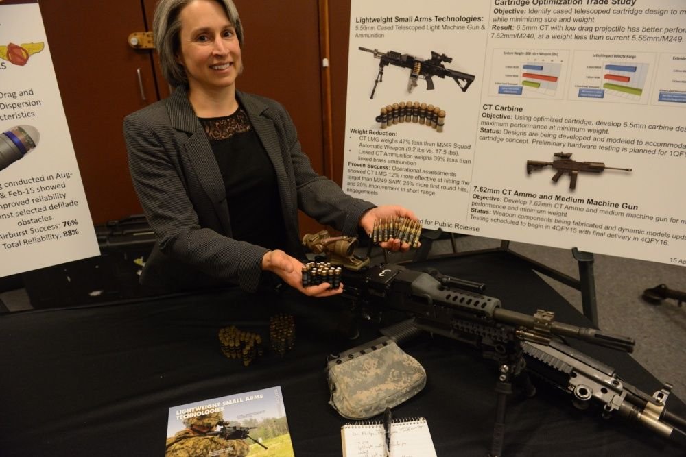 Bob Testa, lead engineer for the Remote Weapons Branch of the Armament Research, Development and Engineering Center, poses beside the Ripsaw Unmanned Ground Vehicle during media day at Picatinny Arsenal. (Photo by David Vergun, May 2015)