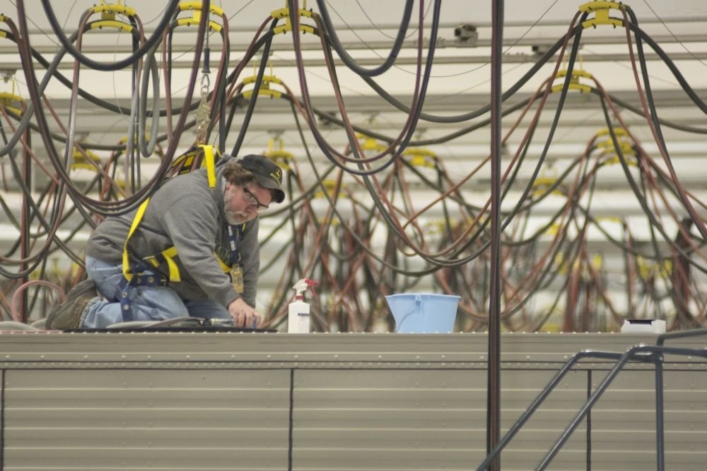 A soldier from the 25th Infantry Brigade Combat Team installs an AS-3900 single channel ground and airborne radio system antenna assembly on a heavy expanded mobility tactical truck A4. (Photo by Justin Eimers, February 2017)